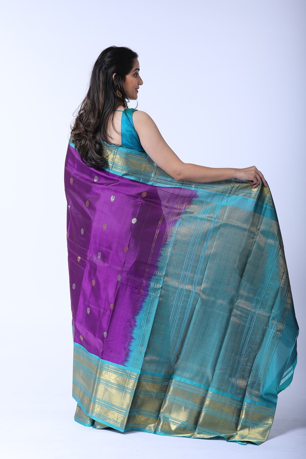 gadwal silk purple withGadwal Silk Purple with Teal Blue (1789)